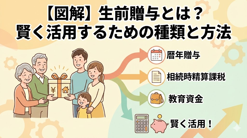 この記事では、生前贈与の基本的な知識から、代表的な2つの制度(暦年贈与・相続時精算課税制度)の違い、そして相続税との比較まで、図解を交えながらわかりやすく解説します。